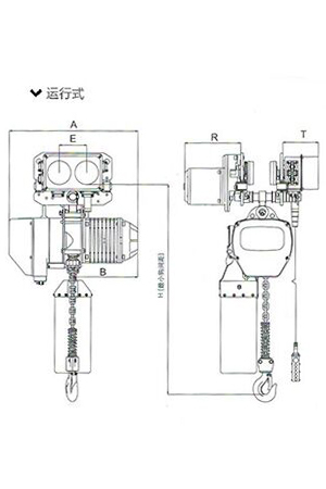 運行式環(huán)鏈電動葫蘆(0.25T-5T) 尺寸參考: | ||||||