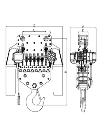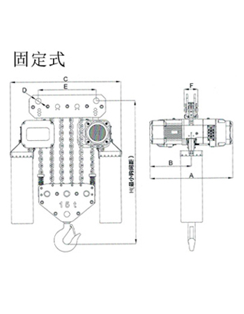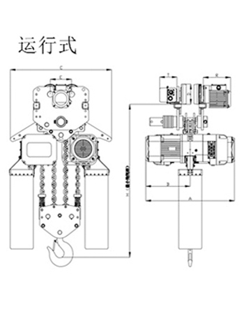 運(yùn)行式環(huán)鏈電動(dòng)葫蘆(30T-50T)尺寸參數(shù): | ||||||