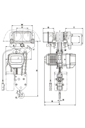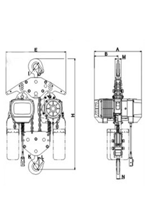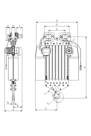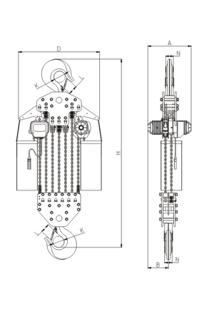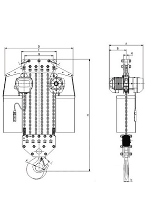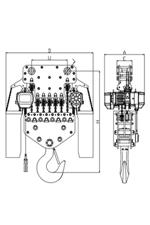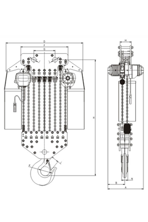 掛板式環(huán)鏈電動葫蘆(7.5T-50T) 尺寸參考: | ||||||||