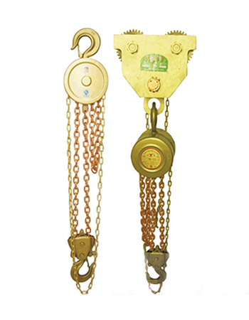 防爆手拉葫蘆以鋁青銅、鈹青銅作為毛坯,防爆手拉葫蘆外殼采用H62銅合金材料,其轉(zhuǎn)動齒輪經(jīng)過高溫?zé)崽幚韽亩_(dá)到齒輪據(jù)有很高的耐磨性。在作業(yè)中產(chǎn)品相互摩擦撞擊不會產(chǎn)生機械火花,在易燃易爆場所不引爆氣體,有效防止火災(zāi)事故。